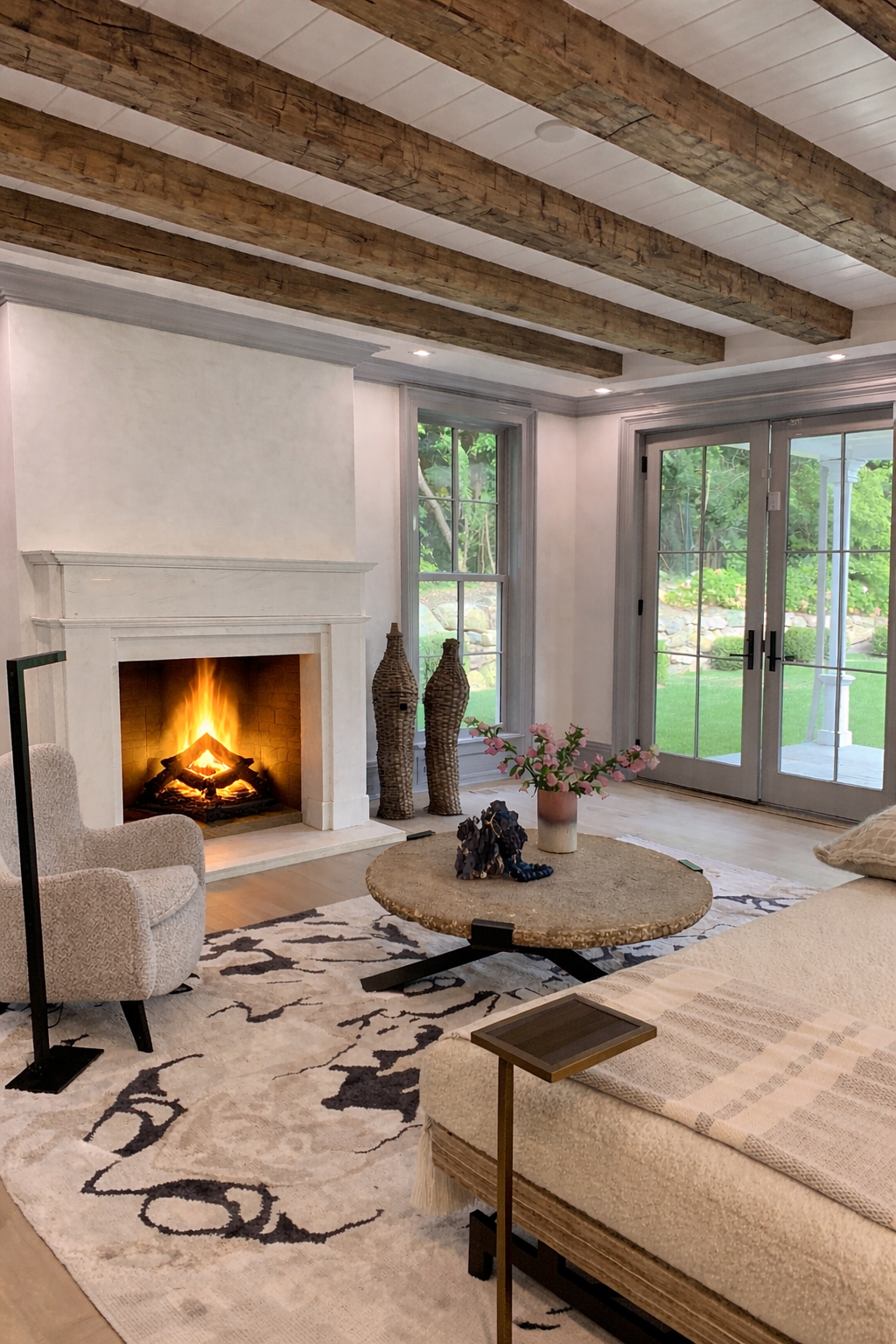 This captains house, built in 1780, was renovated with integrity to keep the energy, and as many materials as possible, of the past intact. Because of the uniqueness of the projects interior we chose to keep the staging minimal yet special. The furniture here is either vintage or designed by Lukas Machnik. The gorgeous living room rug is by Eskayel, and paintings are by Lonny White and Lukas Machnik.